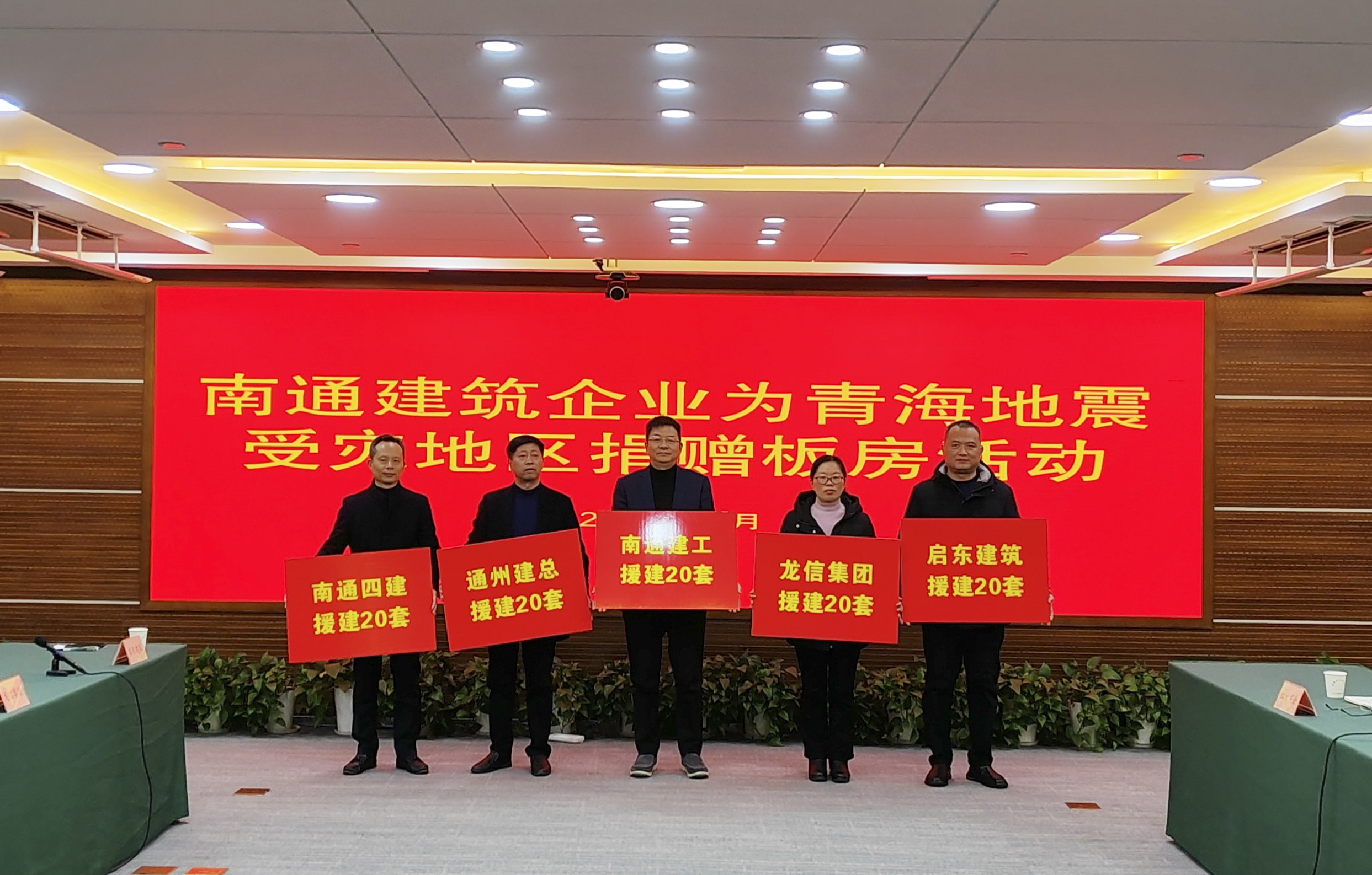 12月22日下午,市政府和住建局举行了南通建筑企业为青海地震受灾地区捐赠板房仪式。集团公司与南通四建集团有限公司、通州建总集团有限公司、龙信建设集团有限公司、启东建筑集团有限公司等五家企业各捐赠20套样板房(共100套计100万元),为当地受灾群众援建临时住所,张忠达总经理出席捐赠仪式。
