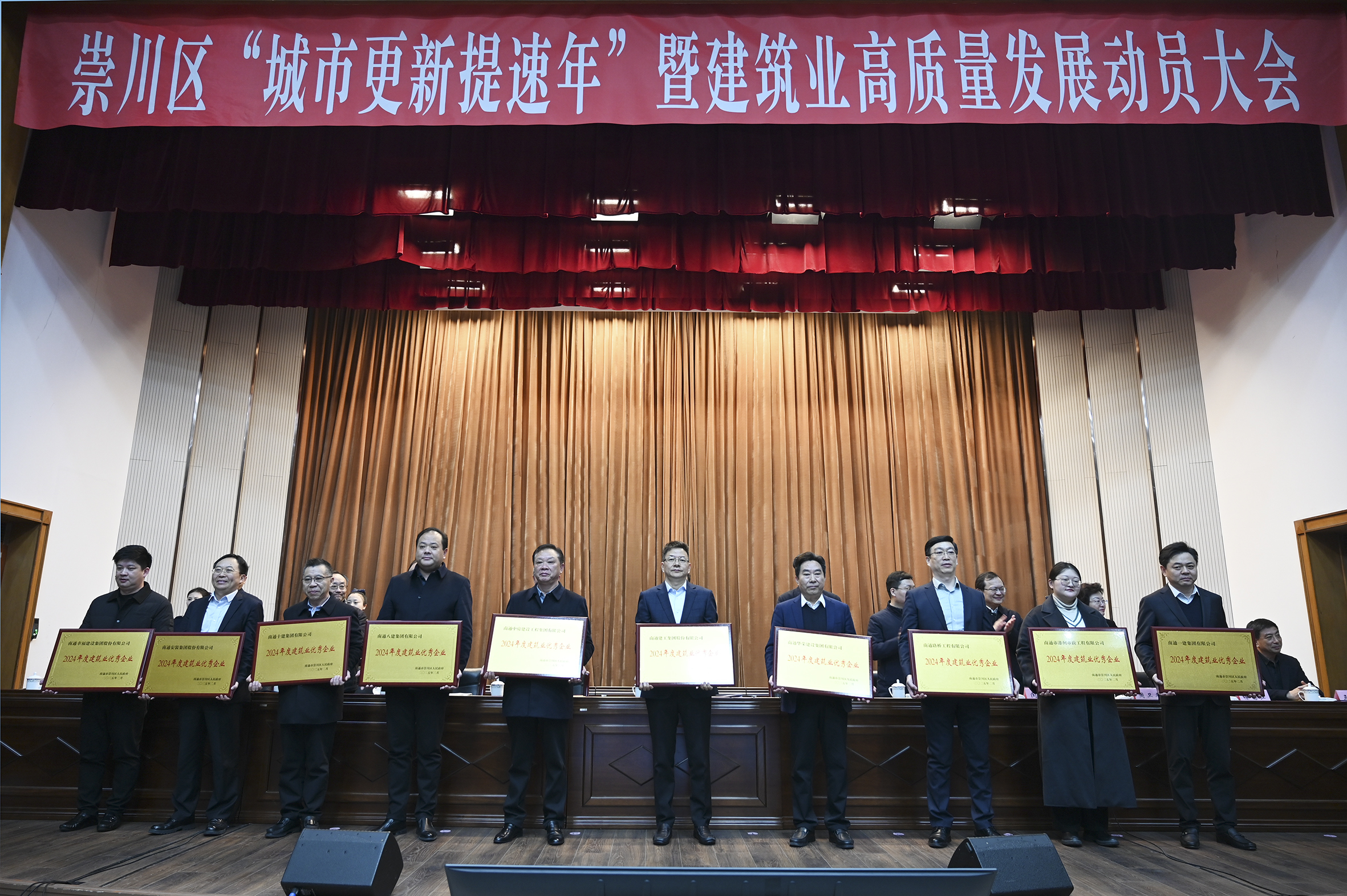 2月15日,崇川区召开“城市更新提速年”暨建筑业高质量发展动员大会,动员全区上下坚持干字当头、干在实处,推动城市更新和建筑业发展提速增效,为建设实力崇川、美丽崇川提供坚实支撑。区委书记胡拥军出席会议并讲话,区人大常委会主任江建春、区政协主席顾保红出席会议。区政府副区长陆志明主持会议。集团公司总经理张忠达出席会议并作交流发言。