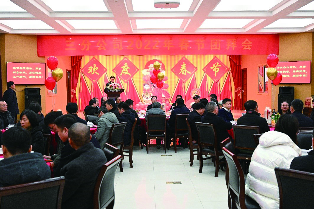 钟一鸣总经理在致辞中说,2021年是三分公司干部职工辛勤耕耘的一年,也是高质量发展取得新成效的一年,全年新签合同额30.42亿元,完成施工产值27.46亿元,完成财务结算收入16.84亿元,实现利润4328万元,圆满完成了集团公司下达的主要经济技术指标,其中,新签合同额、完成财务结算收入再创历史新高。钟总从防范和化解经营风险、项目成本精细化管理、更高层次推进信息化、工程质量创优和人才管理等五个方面对新的一年工作进行了全面部署,他最后表示,2022年,三分公司全体干部职工将始终牢记张向阳董事长对三分公司发展的战略定位:自主经营的主力军、项目管理的样板、经济效益的中心、人才培养的基地,更加紧密地团结在集团公司周围,凝心聚力,奋楫争光,攻坚克难,扎实工作,以优异的成绩向党的二十大和集团公司成立70周年献礼!