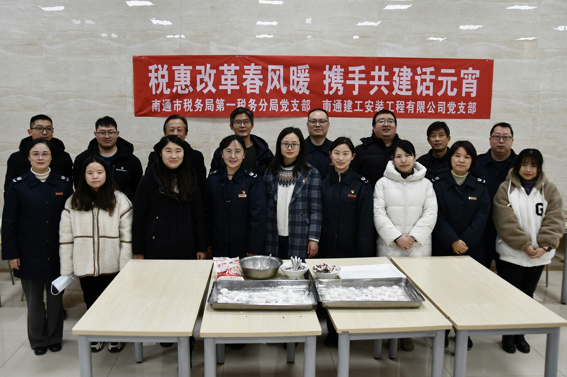 2月2日,在元宵佳节来临之际,为了传承和弘扬中华优秀传统文化,进一步加强企业和税务部门的工作交流,安装分公司党支部与南通市税务局第一税务分局党支部联合组织了“包汤圆.庆元宵”活动,将税务人和纳税人紧紧地连在了一起,共同奏响迎春天、促发展的新春之歌。